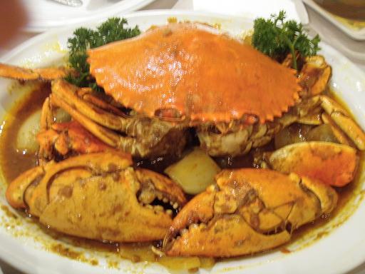 お皿いっぱいの大きな蟹に、スパイスたっぷりのカレーが染みこんでいます。