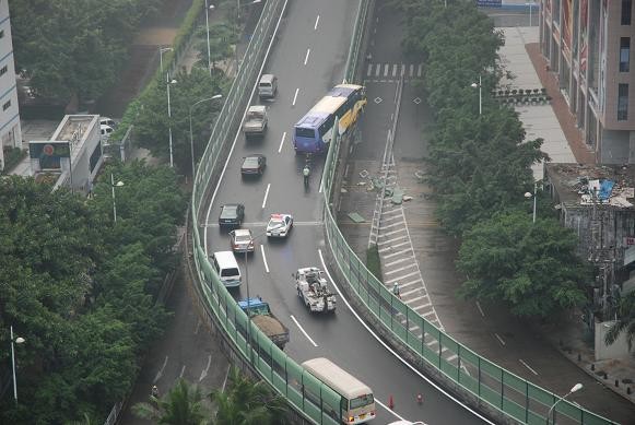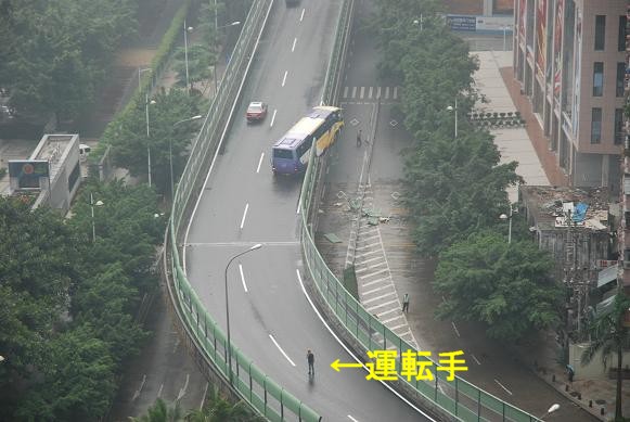 幸い運転手は無事みたいだけど・・・(注:中国は左ハンドルです)