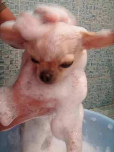 最近のシャンプーは相方→洗う、mimi→乾かすの連携プレーです。