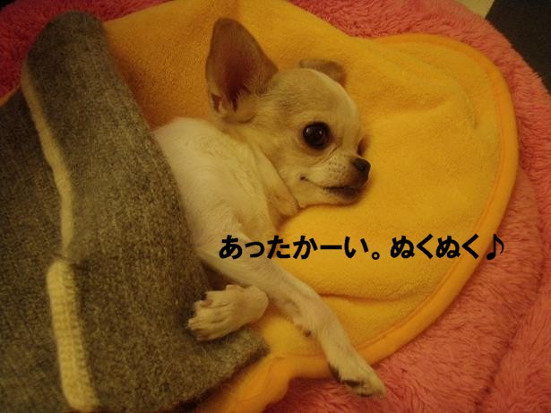 不細工ですが、余っていた毛糸で作ったmimiお手製布団f(^^;)