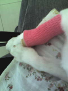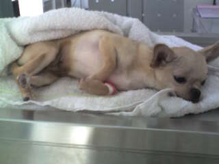 手術当日です。 昨日は早く寝まーす☆なんて言ってましたが 緊張のせいかなかなか寝付けず・・・(ノ_д`) なんとなくワンコと離れるのも嫌で ソファーで一緒に寝てしまいました。 午後1時の予約だったのですが 午前中からなんとなくバタバタ・・・。 ラテの出産の時に手術は経験しているので だいたいの雰囲気はわかるのですが あれもこれも持って行った方がいいのかなーと 考えたり・・・結局病院にはギリギリの到着でした。 病院でも先に検査などしていたので 手術が始まったのは結局2時くらいでしたけどねf(^^;) カメラ持って行こうかと思いましたが 病院でバシャバシャ撮るのも不謹慎かと思い、 携帯のカメラで(こっそり)撮ったので画像悪いです・・・。 何かを察して不安そうなラテ・・・。 手術前に点滴用の管を装着します。 ラテ&シナがなるべく不安にならないように 針を刺す時も近くにいたのですが 自分の注射も見れない人なので卒倒しそうでした( p_q) ラテは歯垢の除去もやってもらうので シナモンが先に手術です。 不安顔なラテを抱っこしつつ待つこと約1時間。 シナモン生還しました☆(TдT) 麻酔のせい(?)でブルブル震えているし 歯並びを良くする為に抜けていない乳歯も 抜いてもらったので口から血も出てるし 見ているだけで辛くなってきてしまい ついつい手術しなかった方が良かったんじゃ・・・ なんて考えが頭をよぎりましたが これもシナモンの体の為でもあるのだからと ずっと頭を撫でて元気付けていました。 30分くらいたつと震えもだいぶ治まり 顔を向けてくれました(^O^)/ ラテの手術も1時間ほどで終了。 バタバタしていてこのお腹の写真1枚しか 撮れませんでしたが、ラテも無事生還致しましたww ラテも最初はブルブル震えていましたが さすがに2回目のせいか(?)少し経つと 起き上がる素振りを見せてくれて安心しました。 今日は2匹とも一晩入院です。 明日午後お迎えに行きまーす!! ハー、本当によかったよぅ(TдT) 結局病院を出たのは6時でした・・・。