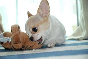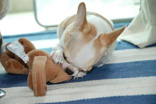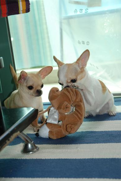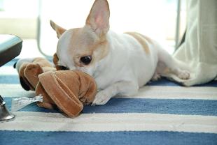 ラテが犬の玩具をガジガジして遊んでたんです(((;゜Д゜)))