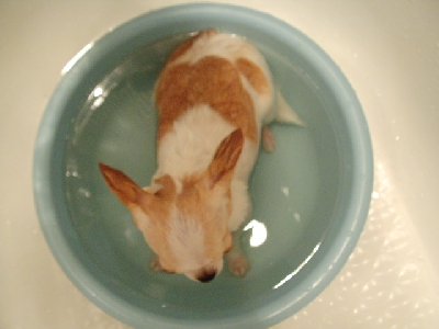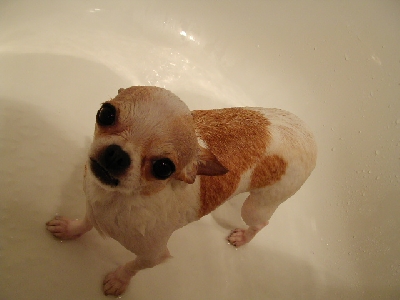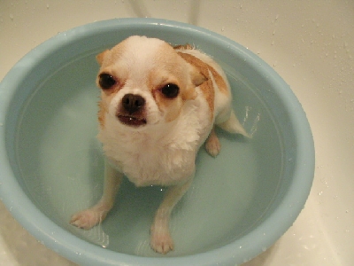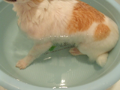 ラテのシャンプー中に湯船の外でずーっと待っていた