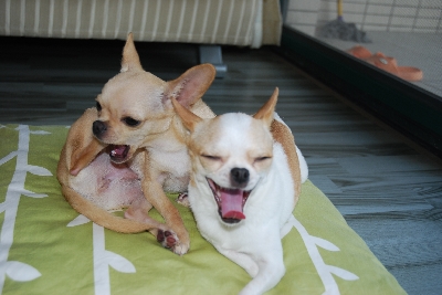 この日は他にこんな写真も撮れました。 シナモン、足食べてるの?(((;゜Д゜))) ラテのあくび顔ww シナモンはまだ足食べてます(-_-;) 変顔ばっかりじゃラテ&シナが可哀相なので 可愛い写真も載せておこうっと! この顔可愛いんじゃない?(親バカ) これもいいね~(さらに親バカ) でもこういう顔にやられてついおやつあげたりとか・・・(ダメじゃん) チワワって罪作りなんです(>o<)/ シナモンの写真は動き回るのでなかなか撮れませんが その中でも撮れたものを少し・・・。 しっぽフリフリ~♪ 目と鼻が黒豆みっつに見えません? シナモンの密かなニックネームは「黒豆」です(*≧m≦*) めずらしい大人っぽいお顔(?) 明日は病院へ抜糸に行く予定です☆