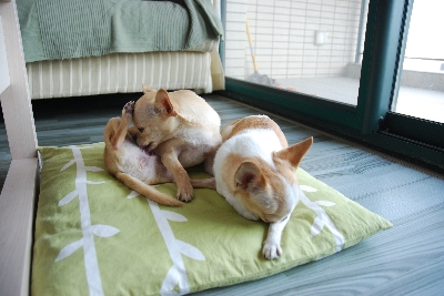 撮影に非協力的なシナモンにラテが説教を始めました。 ラテ「ちょっとあんた真面目にやりなさいよ」 シナモン『ハーイ』 「ったく、返事だけはいいんだから~」 『ハイハイ』 「ハイは一回でいいの!」 『ハーイ(頭痒いなー)』 「だいたいあんたはいつもね・・・グダグダ」 『・・・』 「って、ちょっと話し聞いてるの??」 『痒~い!!』 「こりゃ、ダメだ・・・」 『え?なーに?』 「あたしには手に負えません・・・」 『ふんふ~ん♪』 「もう・・・寝ますZzz」 『ふふふ~ん♪』 ちゃんと撮影できる日は来るのか?!