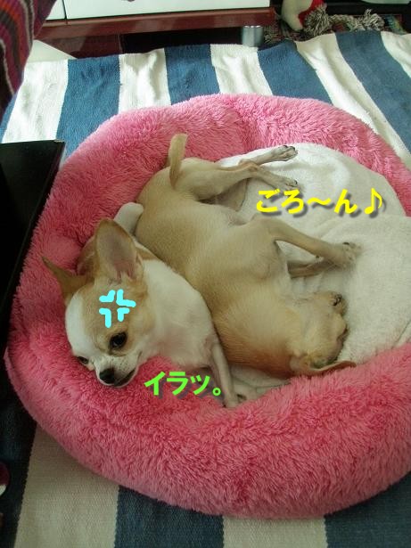 気にせず腹だしシナモン。 ラテはイライラ・・・。